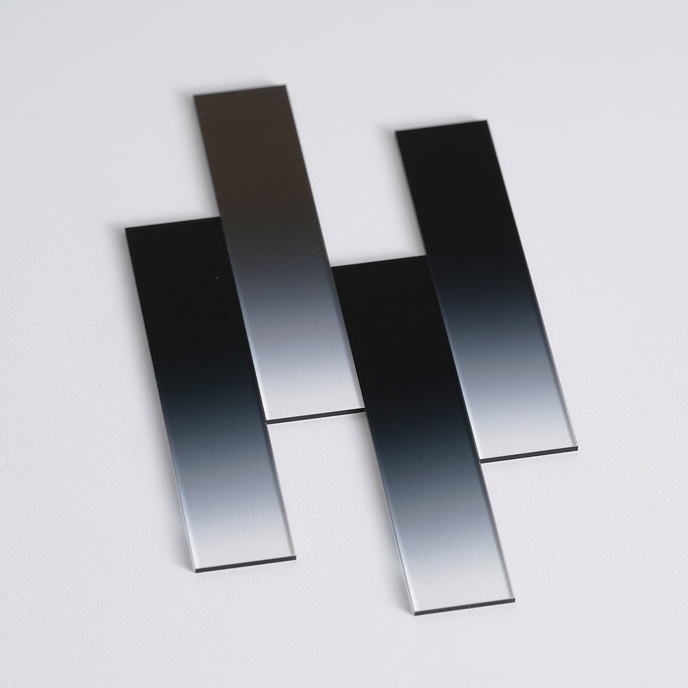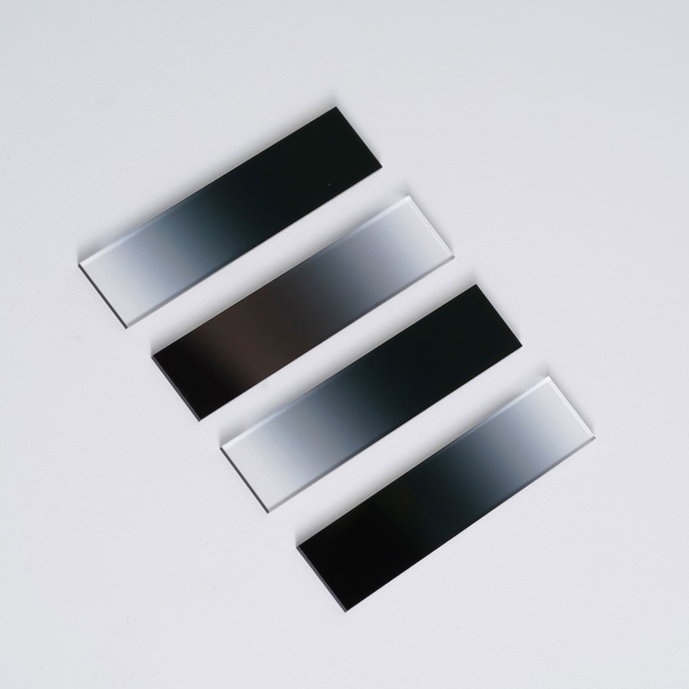 條形漸變中性密度濾光片作為一款具備獨特條形漸變結(jié)構(gòu)的光學(xué)元件,作為中性密度濾光片家族的創(chuàng)新成員,它提供了光密度沿單一方向(如水平、垂直)線性變化,其核心特色在于特定條形方向上透光率呈現(xiàn)線性漸變分布。從濾光片的一端到另一端,透光率按照預(yù)設(shè)的線性規(guī)律逐漸變化,這種設(shè)計為光學(xué)系統(tǒng)提供了更靈活、精準的光強調(diào)控方案。