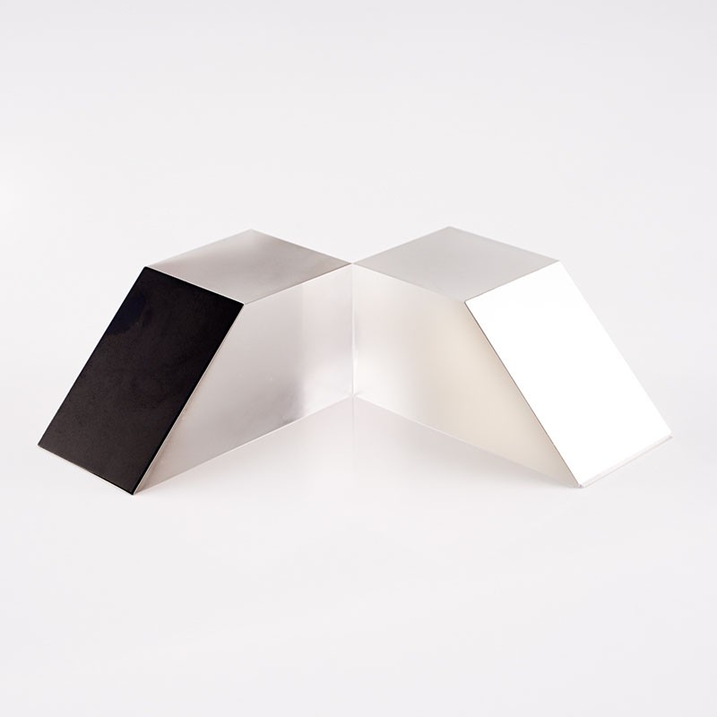 半五角棱鏡是一種特殊的光學元件,它的結構特點是由五棱鏡對切而成,是光束定角度(通常為45°)轉向器件。半五角棱鏡具有許多優點,在應用中,半五角棱鏡常被用于望遠鏡等系統中,使光束實現固定的45°轉折。半五角棱鏡的反射面通常鍍有鋁膜,并加以黑漆保護,而其入射面和出射面則鍍有MgF2(氟化鎂)增透膜,以增強其光學性能。